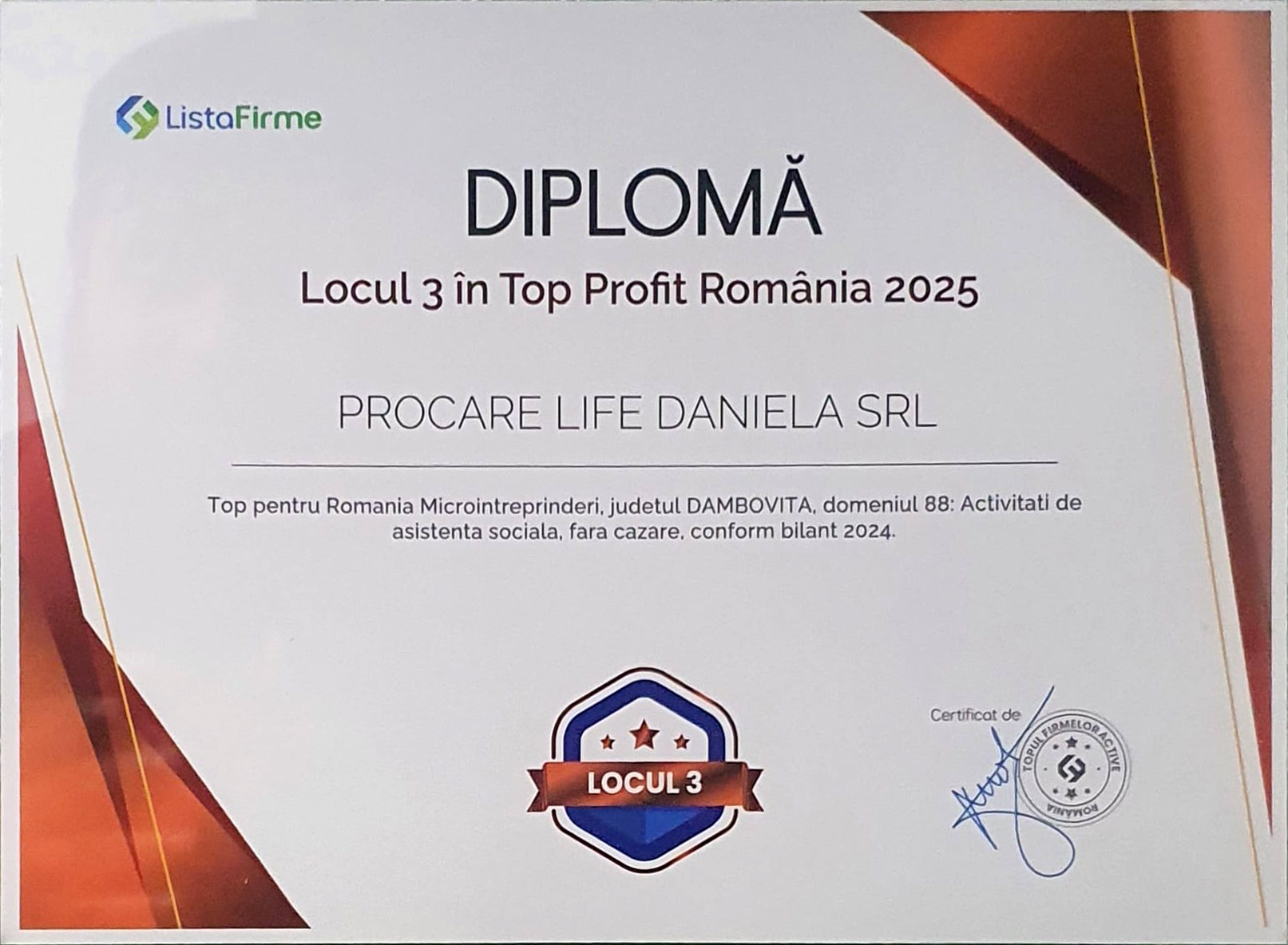 Am creat Procare Life Daniela pentru a oferi această normalitate. Cele două premii 'Top Profit' nu sunt despre banii mei, sunt dovada că sute de familii au găsit la noi liniștea pe care o căutau."